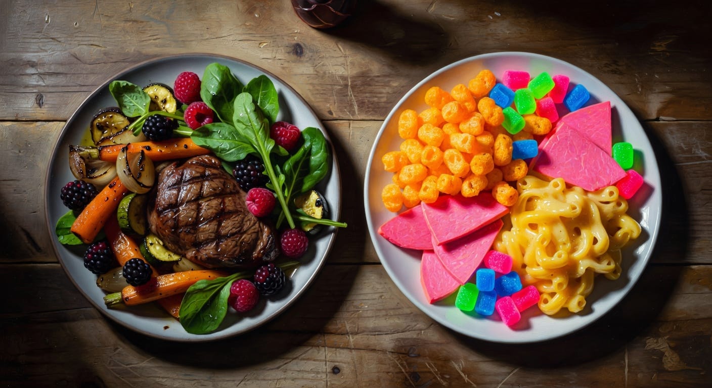 These are the formative years when the body establishes its gut microbiome, when neurological development runs at full speed, and when endocrine systems calibrate for a lifetime. And more than six out of every ten calories entering these developing bodies are industrial formulations optimized for shelf life and profit margin, not human development.