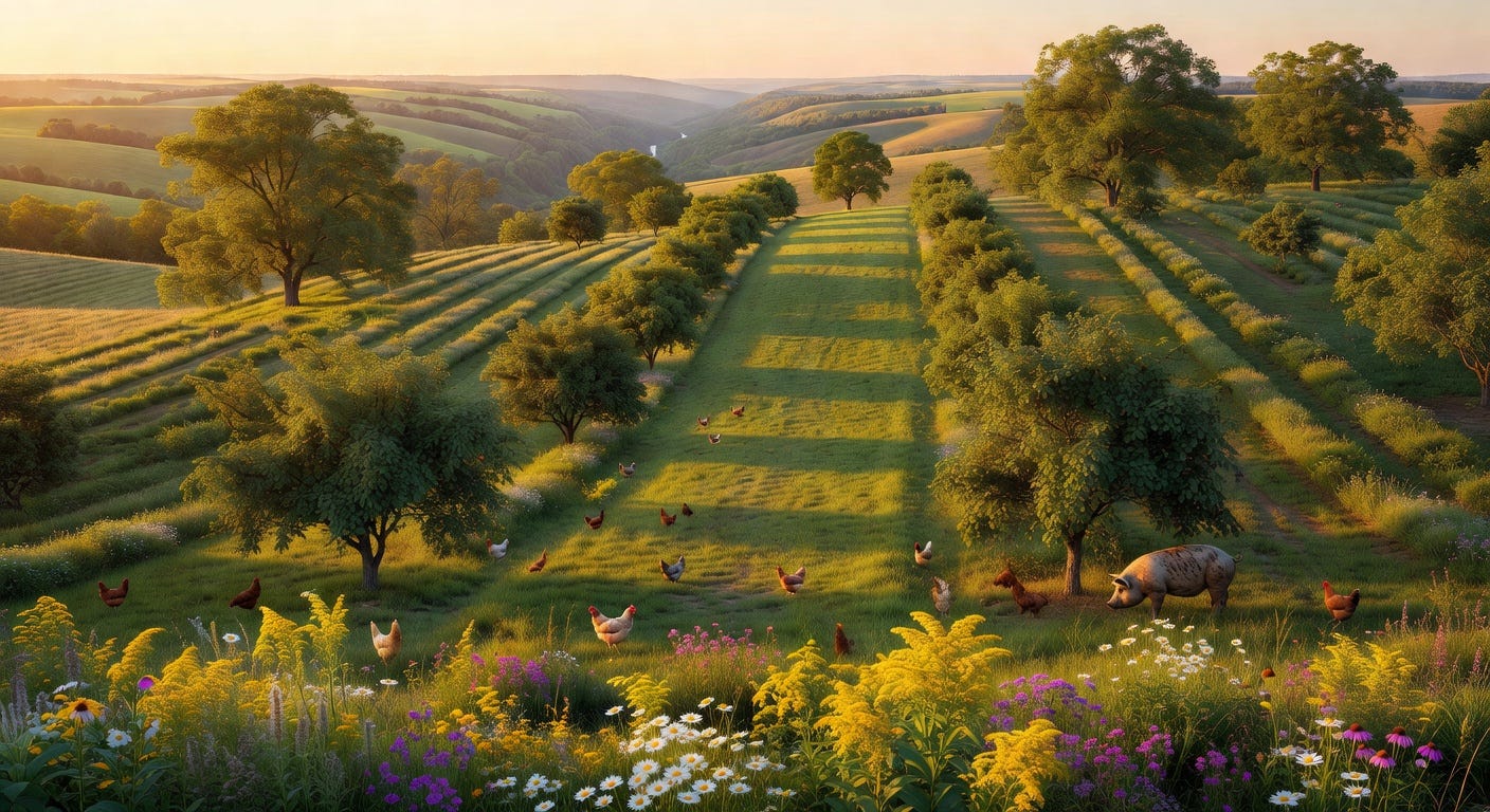 The land Shepard bought was typical Midwest wreckage: overgrazed pasture, depleted soil, the kind of exhausted ground left behind after decades of corn and soybean monoculture. It sits in the Driftless Area of southwestern Wisconsin, a region the glaciers skipped, leaving behind rolling hills and river valleys instead of the flat prairie most people picture when they think of the heartland.